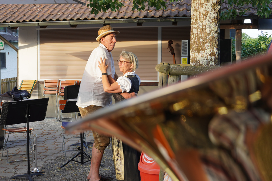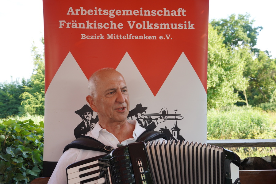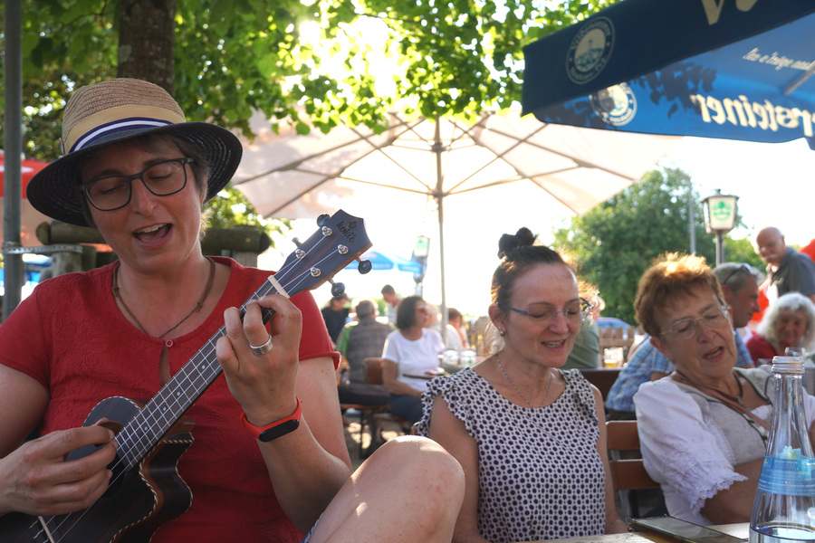 Darüber hinaus waren aber auch viele Mitglieder und Fans dem Aufruf gefolgt, und genossen die volksmusikalische Unterhaltung im sonnigen Biergarten. Ein Tisch mit Musik-Kassetten und Noten, die zu verschenken waren, sowie die Lage am beliebten Radweg am Main-Donau-Kanal führte immer wieder zu spontanen Unterhaltungen mit eigentlich „unbeteiligten“ Gästen und Passanten, die sich ebenfalls sehr über die Darbietungen freuten und beim gemeinsamen Singen mit Werner Bauer und Karin Bümlein mit einstimmten.
