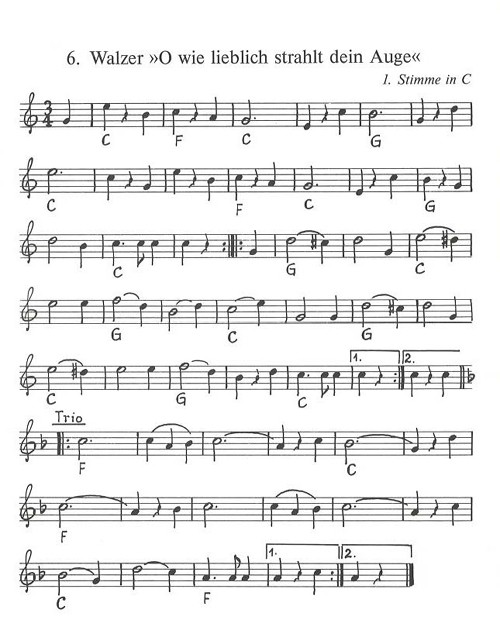 Zehn Tanzmusikstücke in C-Besetzung. Heft III. Fünf Stimmenhefte mit zwei Zusatzstimmen für B-Besetzung im Umschlag (Mindestbesetzung drei Stimmen). Ausgewählt und eingerichtet von Ludwig Moritz. München 1989